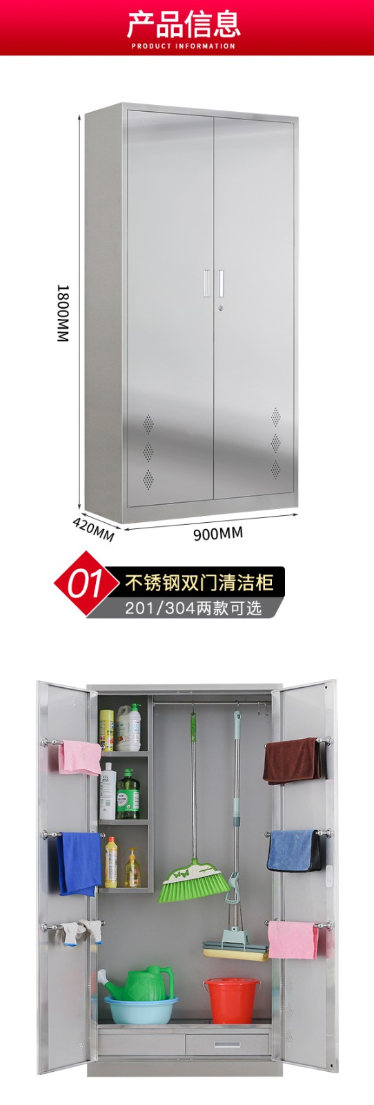 不銹鋼清潔柜雙門